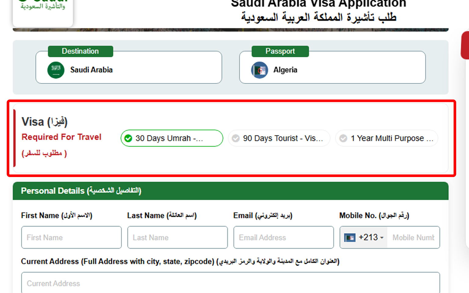 Depending on your country of residence, you may be able to apply for a Saudi Arabia visa as your niche. There is a list of visas with details for limits and visa fees. Select your visa and click on Apply now button.